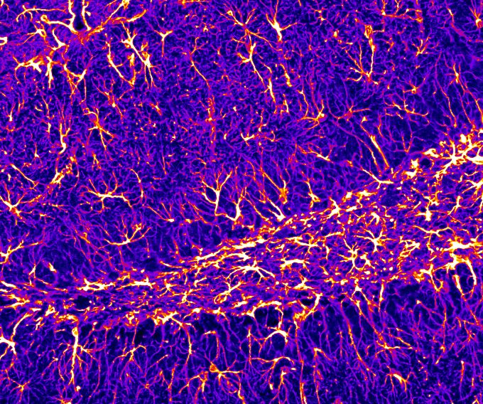 Astrocytes in the mouse hippocampus stained against GFAP